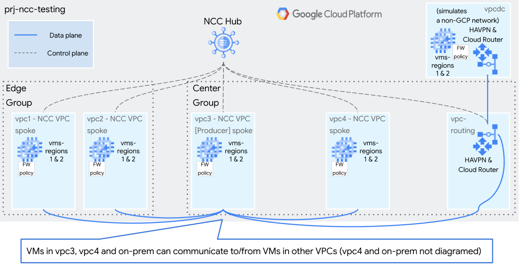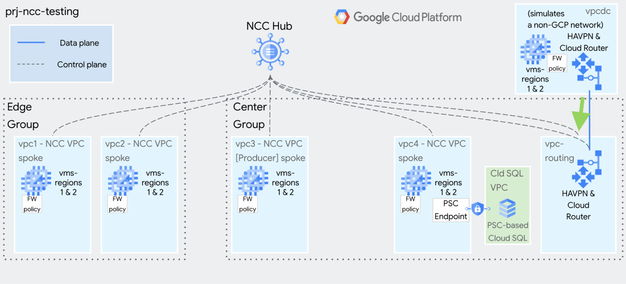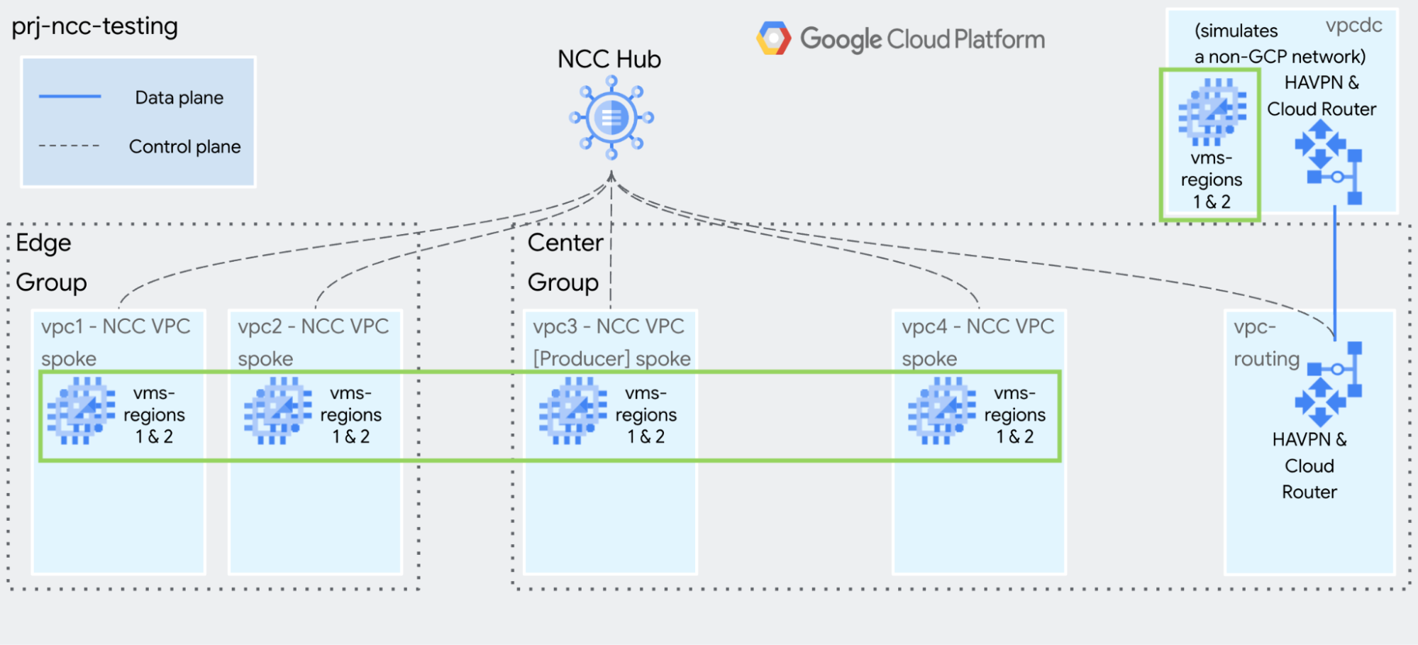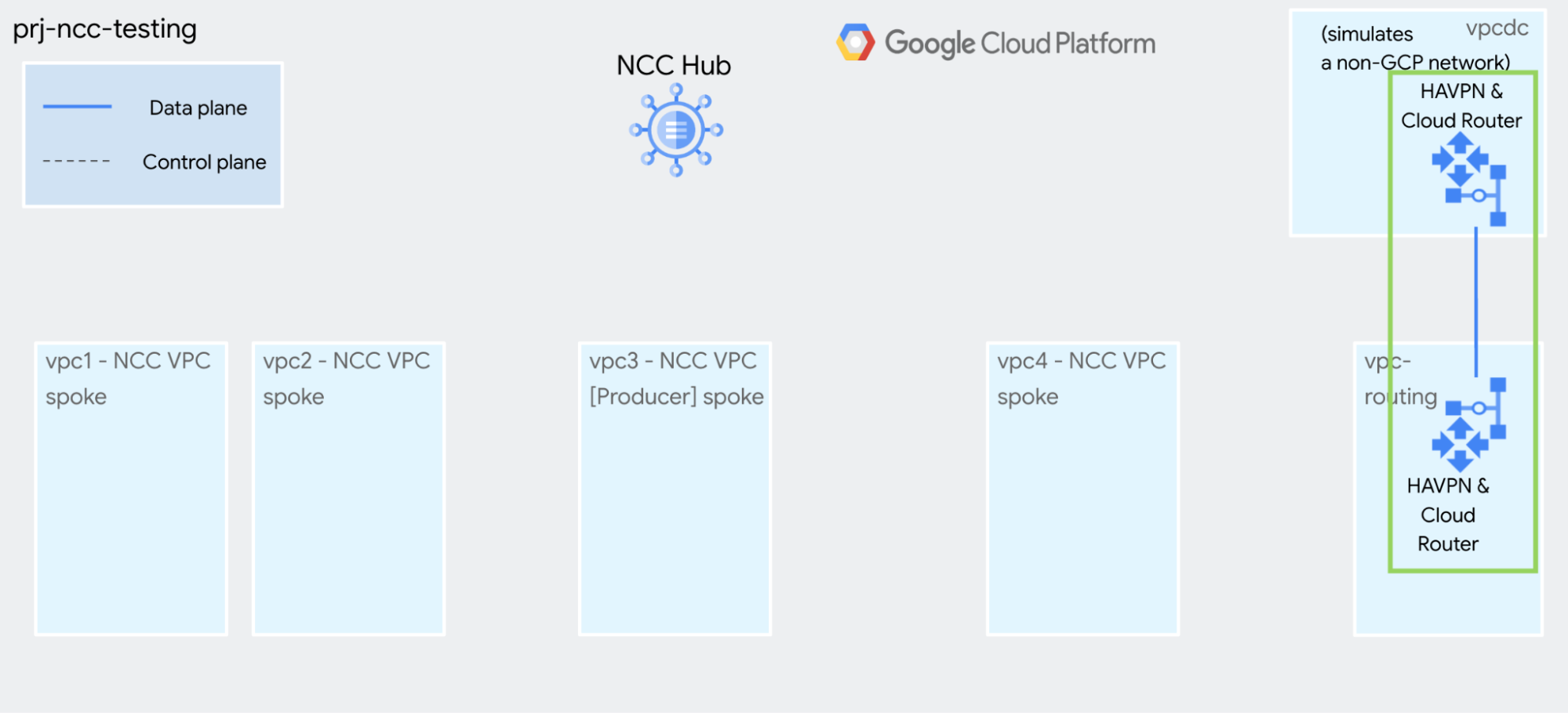 This guide will help you build NCC for testing and demonstration purposes. The goal is make it simple and quick to use gcloud commands to build a static, isolated environment.