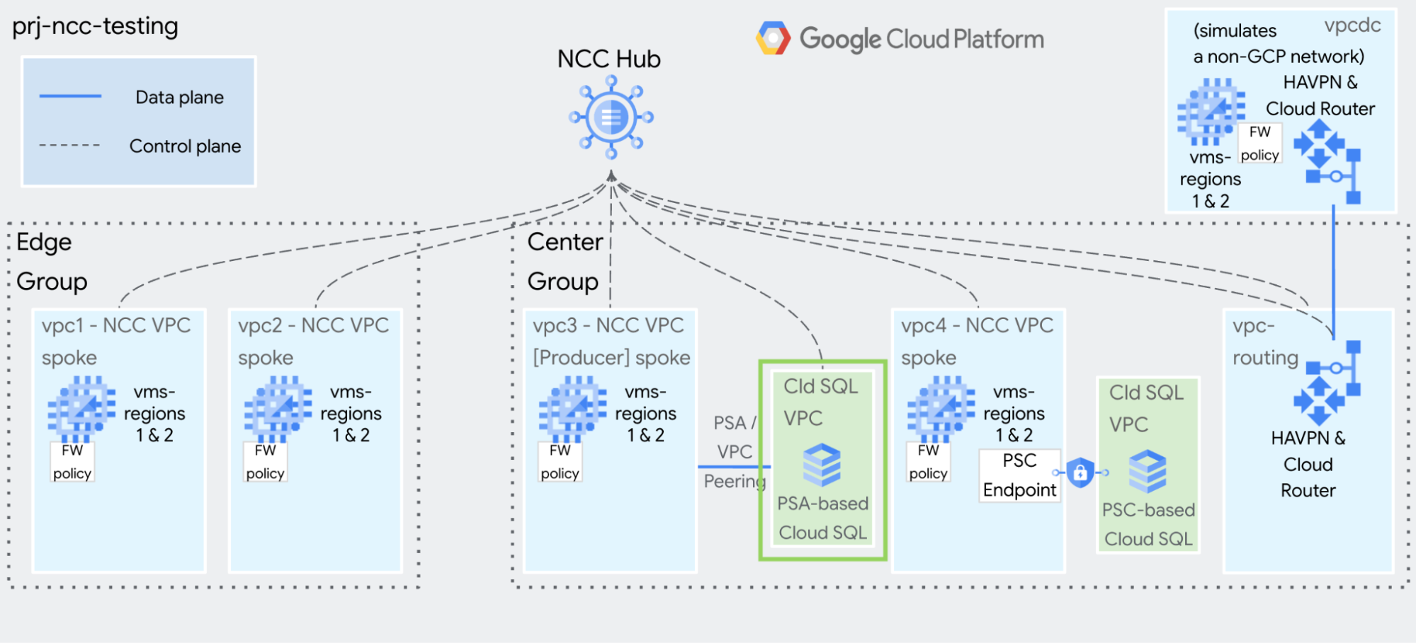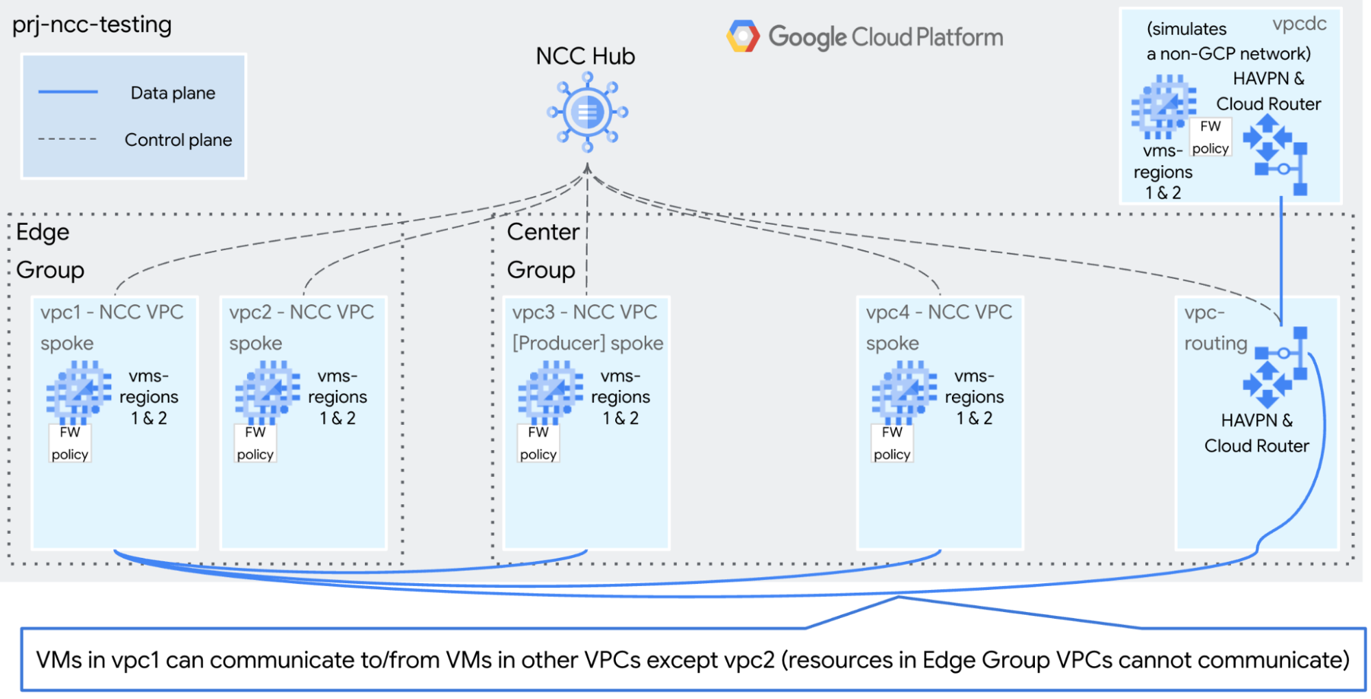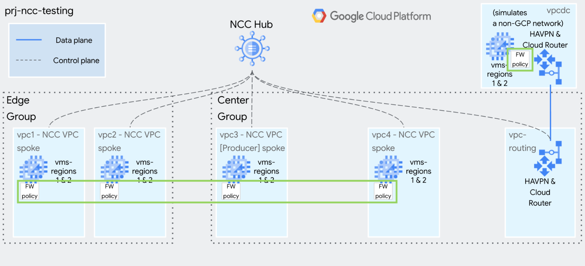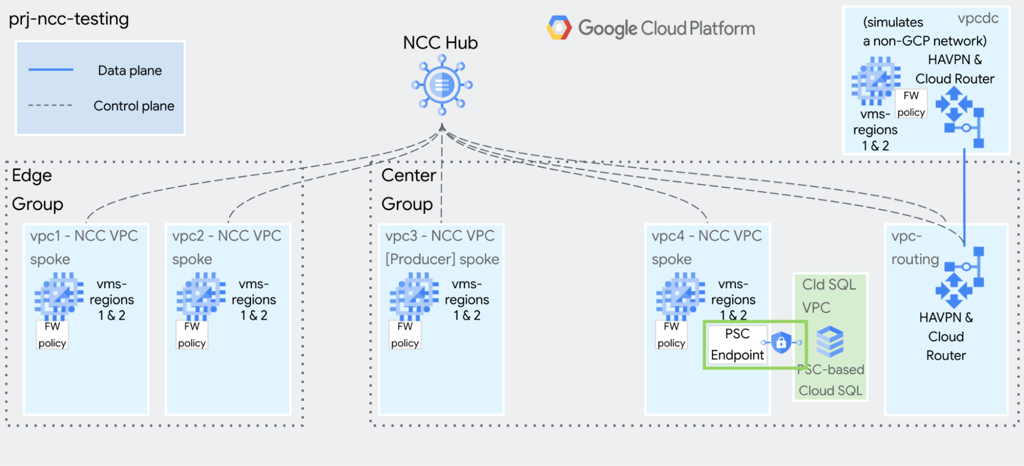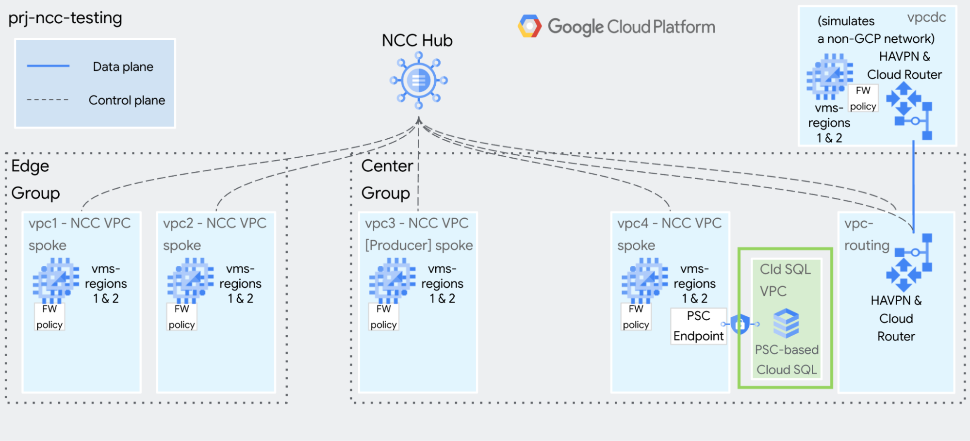 This guide will help you build NCC for testing and demonstration purposes. The goal is make it simple and quick to use gcloud commands to build a static, isolated environment.