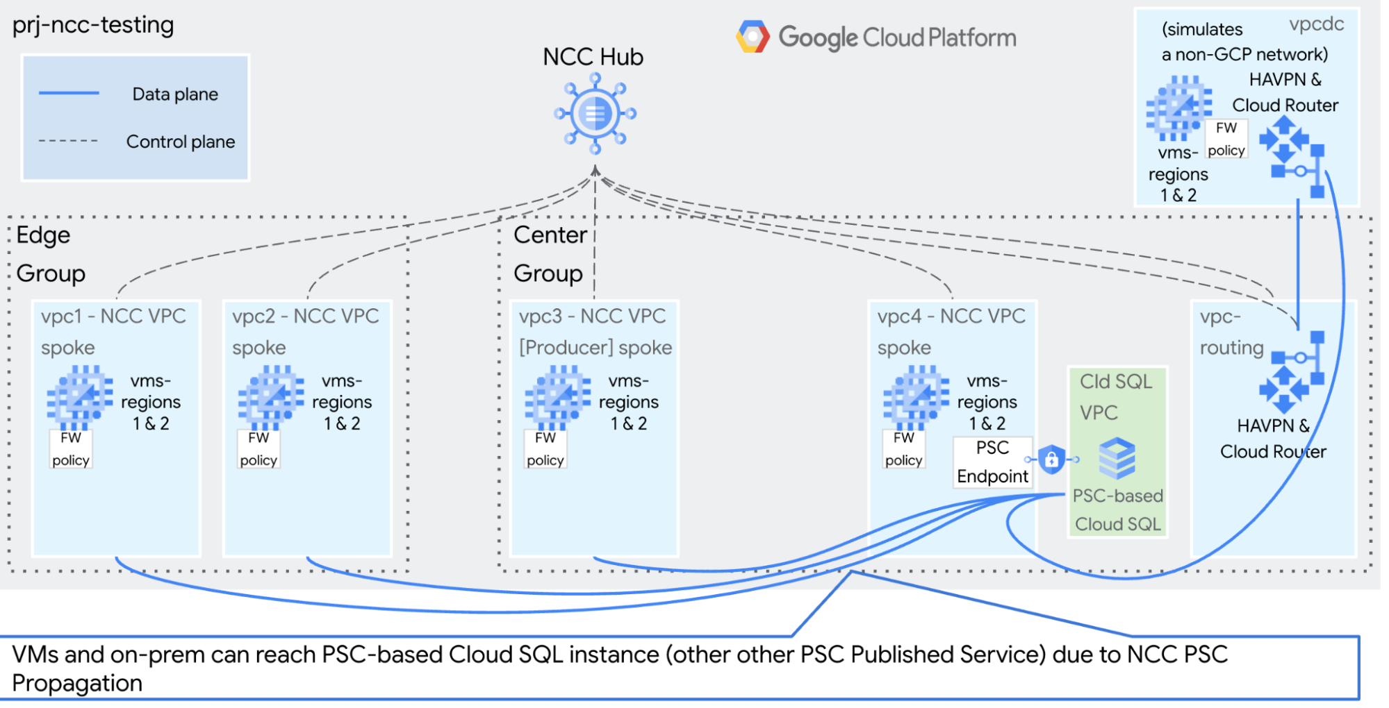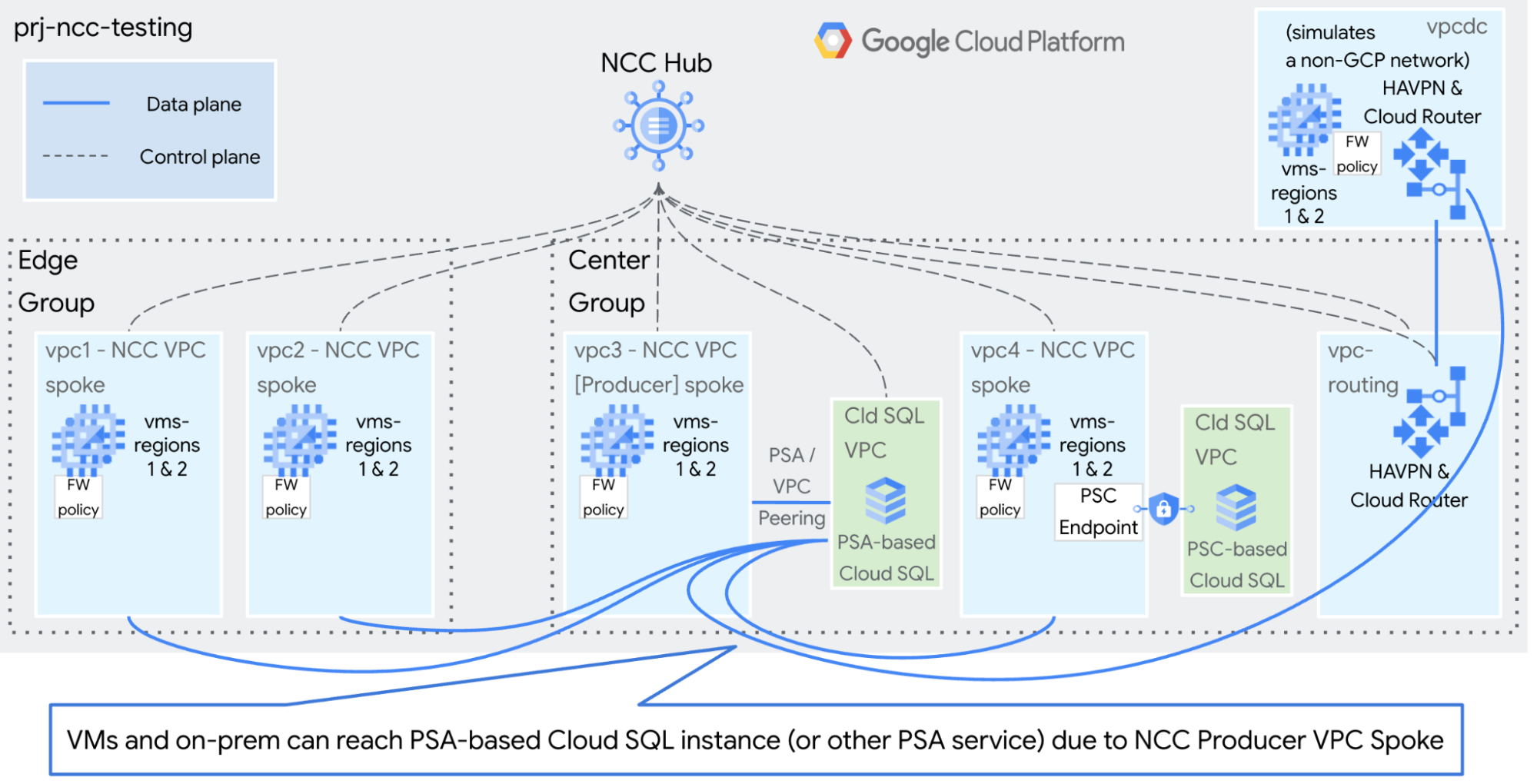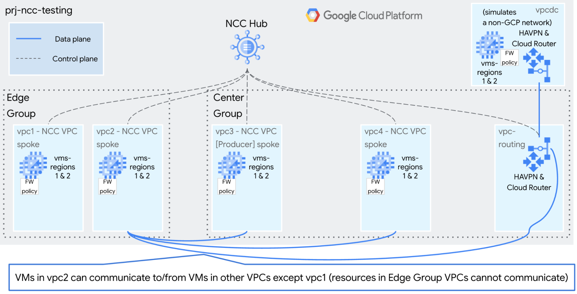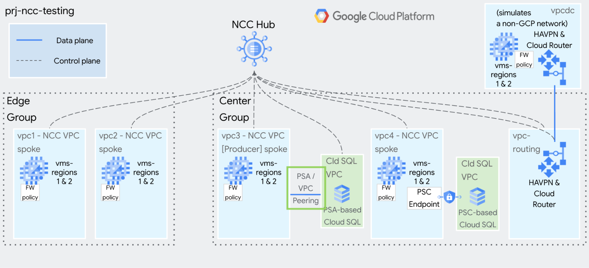 This guide will help you build NCC for testing and demonstration purposes. The goal is make it simple and quick to use gcloud commands to build a static, isolated environment.